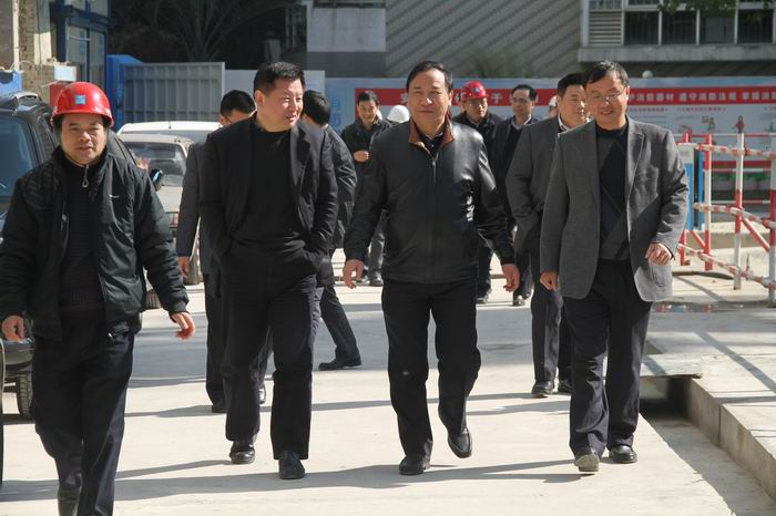 集團黨委書記、董事長張忠(左3),總經理陳軍華(左2)視察海西商務大廈施工現場