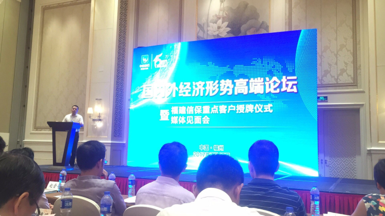 7月17日,中國(guó)出口信用保險(xiǎn)公司福建分公司在福州舉辦“國(guó)內(nèi)外經(jīng)濟(jì)形勢(shì)高端論壇”暨福建信保重點(diǎn)客戶授牌儀式,外貿(mào)集團(tuán)權(quán)屬漳州外貿(mào)公司獲頒“最具忠誠(chéng)力重要合作伙伴”稱號(hào)。漳州外貿(mào)公司董事長(zhǎng)祝海輝、總經(jīng)理邱藝卿應(yīng)邀參會(huì),祝海輝作為三家企業(yè)代表之一在會(huì)上發(fā)言。