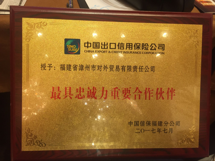 漳州外貿(mào)公司獲中國(guó)出口信用保險(xiǎn)公司福建分公司 “最具忠誠(chéng)力合作伙伴”稱號(hào)