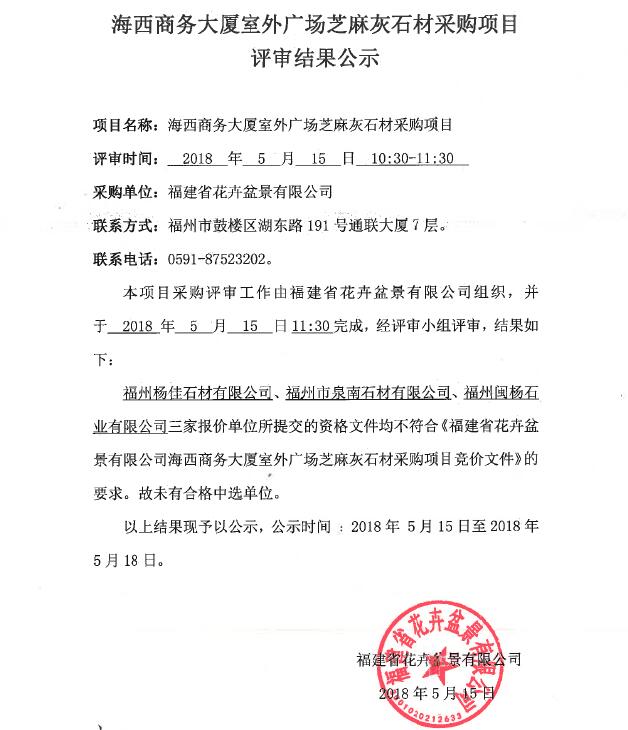 海西商務大廈室外廣場芝麻灰石材采購項目評審結果的公示