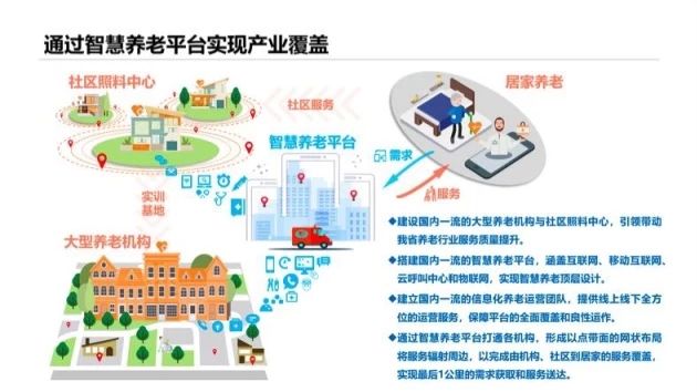 放眼產業發展前景和全局,以“互聯網+”為平臺、醫康養結合為特色、家庭簽約醫生為載體,積極推進智慧健康養老平臺建設,確立了鏈接居家、社區和機構養老,貫通醫療、健康、養老結合的養老產業全覆蓋的平臺發展戰略,打造“互聯網+”健康養老產業新模式。