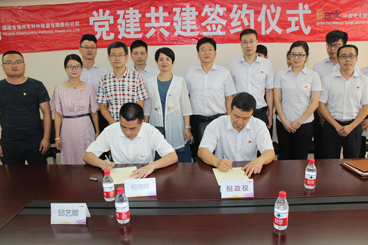 漳州外貿公司與光大銀行漳州分行簽署黨建共建協議