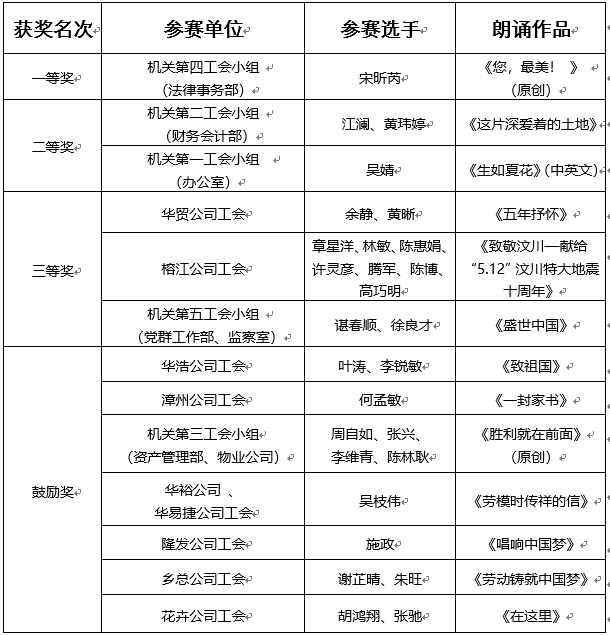 福建外貿集團“中國夢·勞動美”朗誦比賽獲獎名單