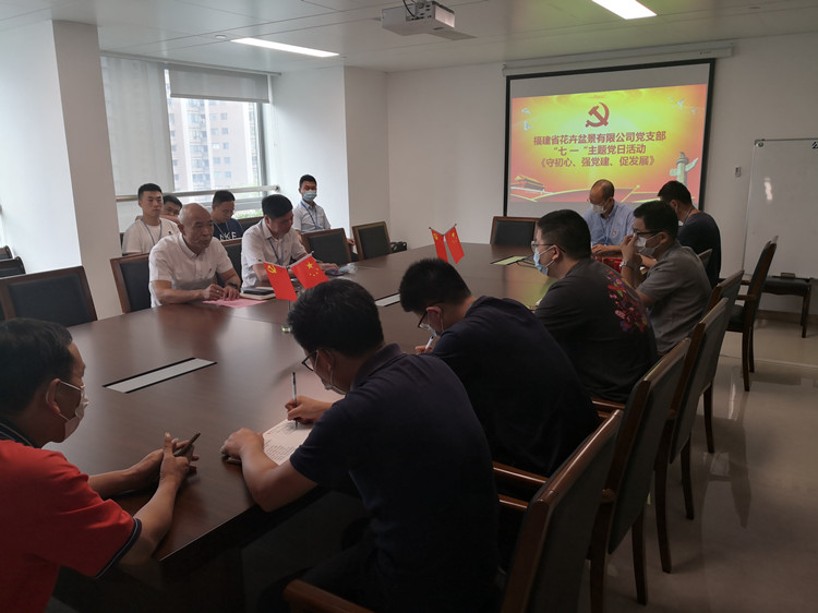 2020年7月1日上午,外貿集團權屬省花卉盆景公司黨支部在會議室組織全體在崗黨員、入黨積極分子開展“守初心、強黨建、促發展”七一主題活動。